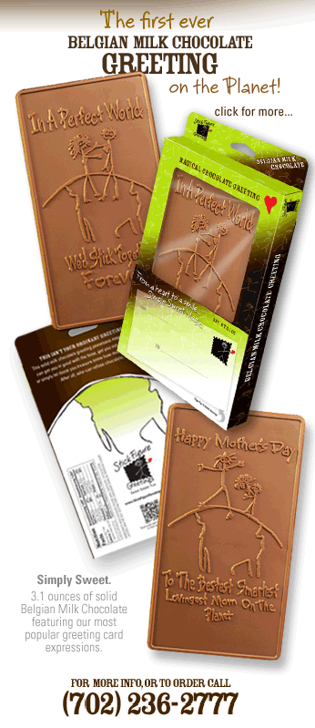 HOME | CARDS | CHOCOLATE | GIFTWRAP | PENDANTS | SPECIALTY | CONTACT © 2008-2016 Stick Figure Greetings • All rights reserved