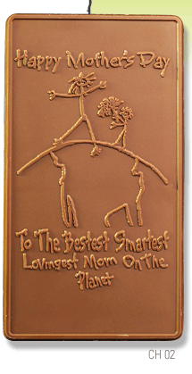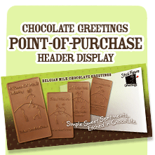 Minimum orders include an 18" x 9" point-of-purchase display header introducing the first ever chocolate greeting on the planet.